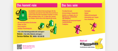 Druckvorlage Glascontainer Grünglas 360 x 200 mm mit Co-Branding (farbig)