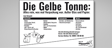 Druckvorlage Aufkleber Gelbe Tonne mit Co-Branding, DIN A5 (148 x 210 mm) | Verpackungsfremde Störstoffe